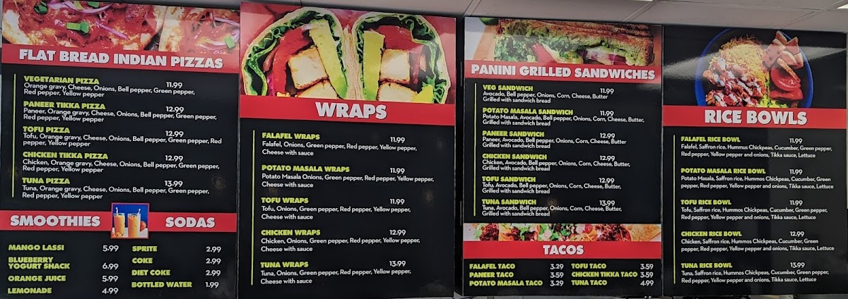 Don't miss out on their unique Rice Bowls, featuring a delightful mix of saffron rice, fresh vegetables, and your choice of protein, be it chicken, tofu, or even falafel. The Chicken Tikka Pizza offers an enticing twist on traditional flatbreads, marrying the best of both worlds.